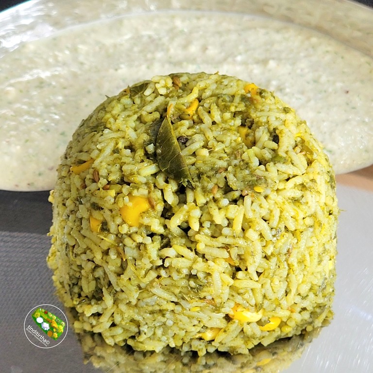 Sweet Corn Spinach rice | Corn Palak rice |