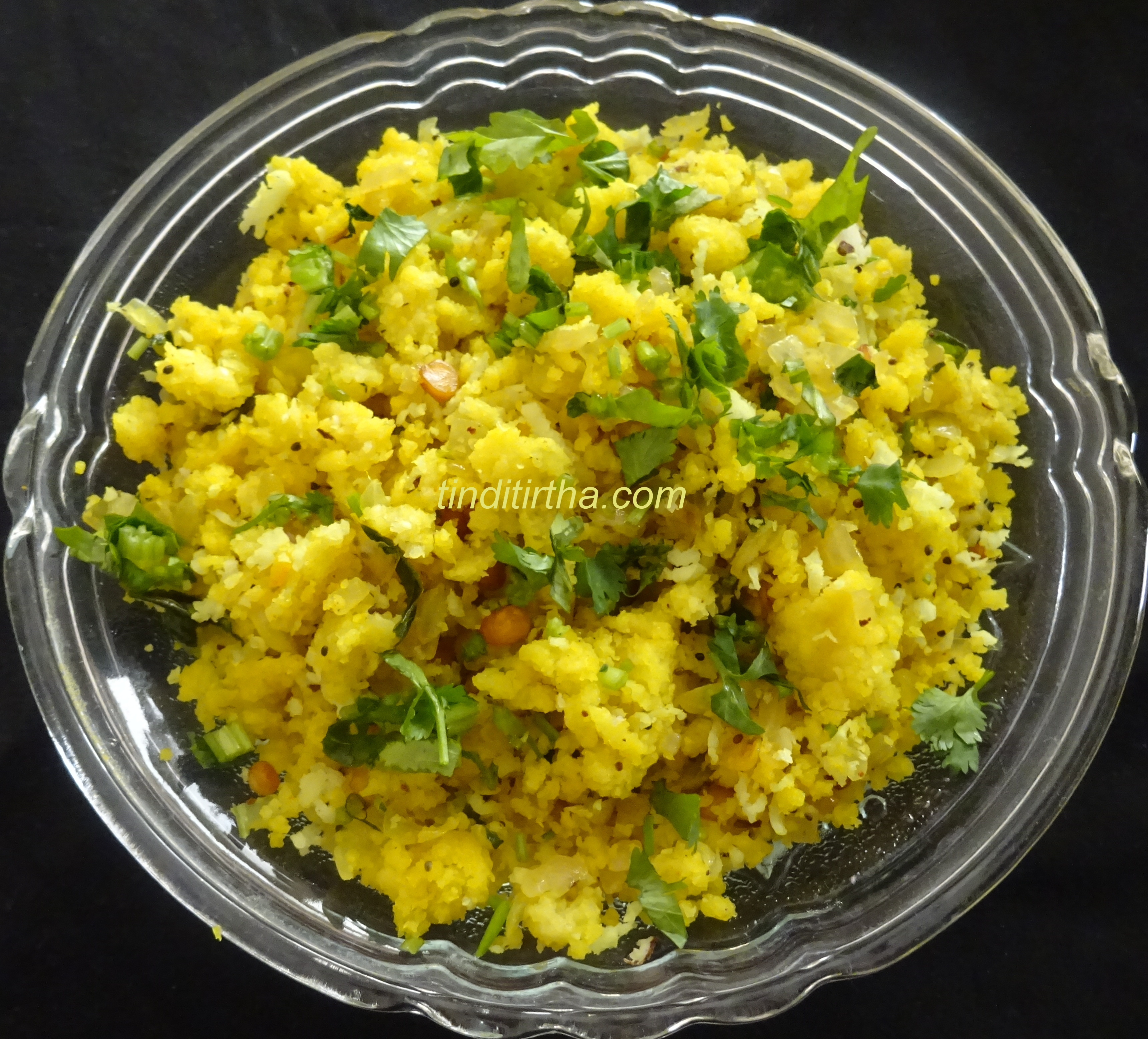 • Remove from the fire, sprinkle coriander leaves & coconut