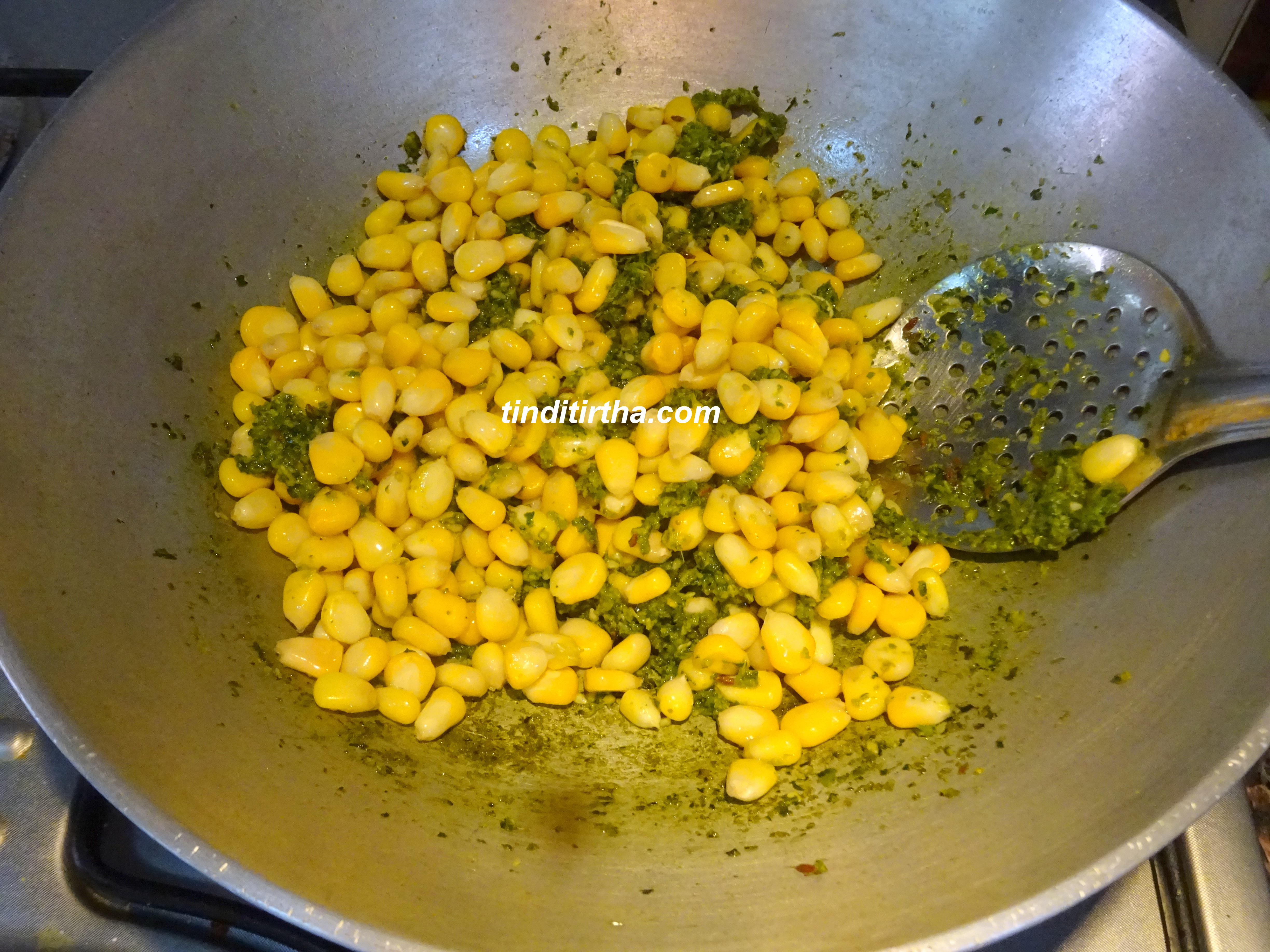 We can make this corn rice by adding Palak/Spinach leaves as well, which in turn makes this rice dish more nutritious